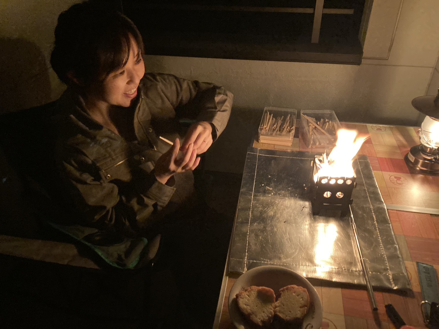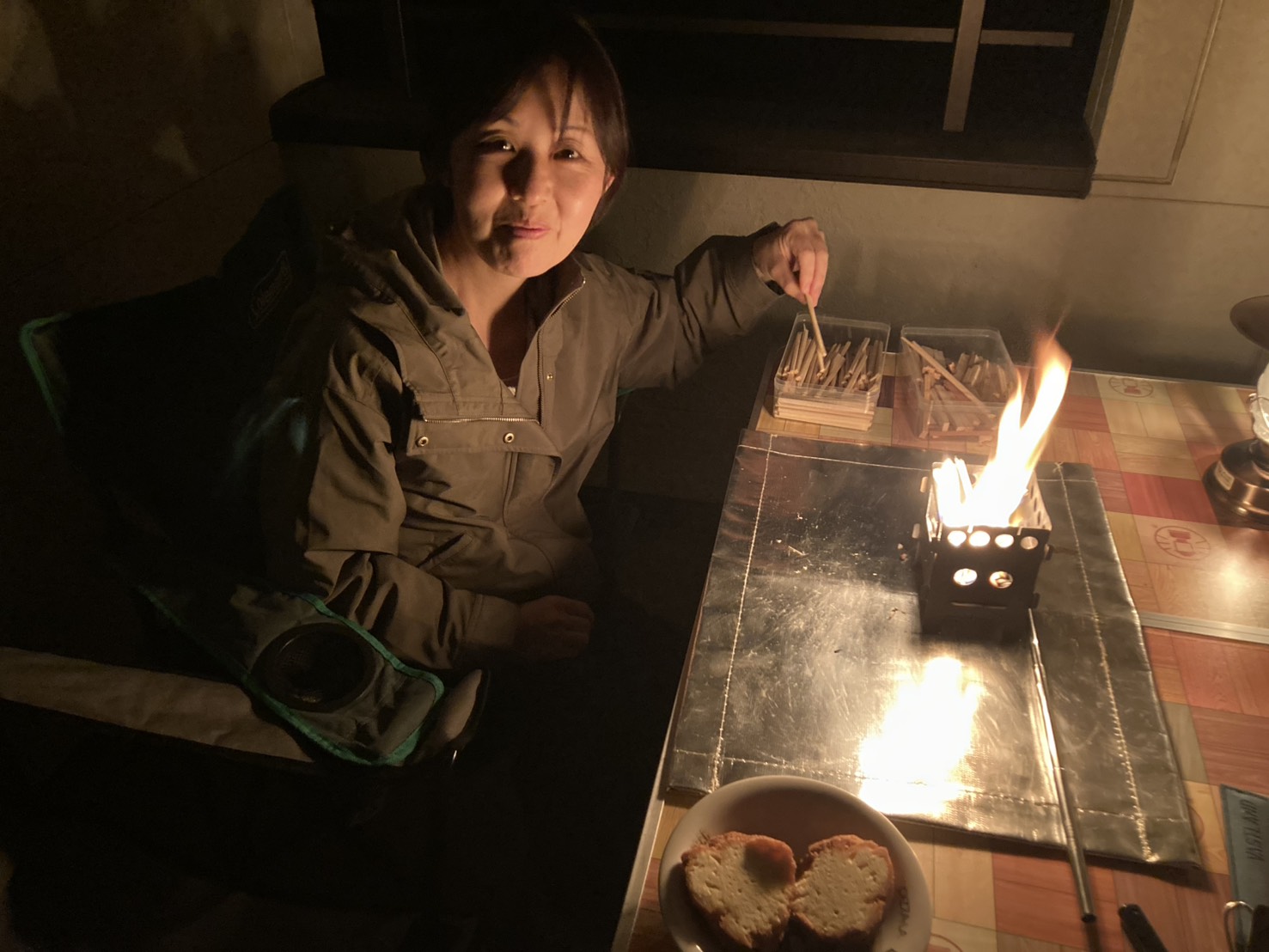 今回は、マイクロストーブを使って、昼間と夜の2回、焚き火を楽しむことができました。