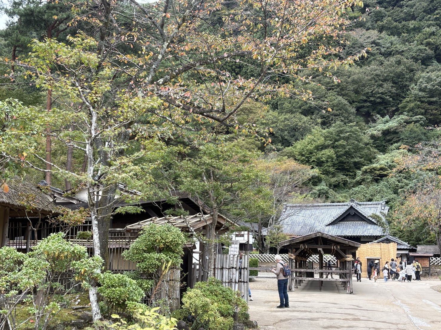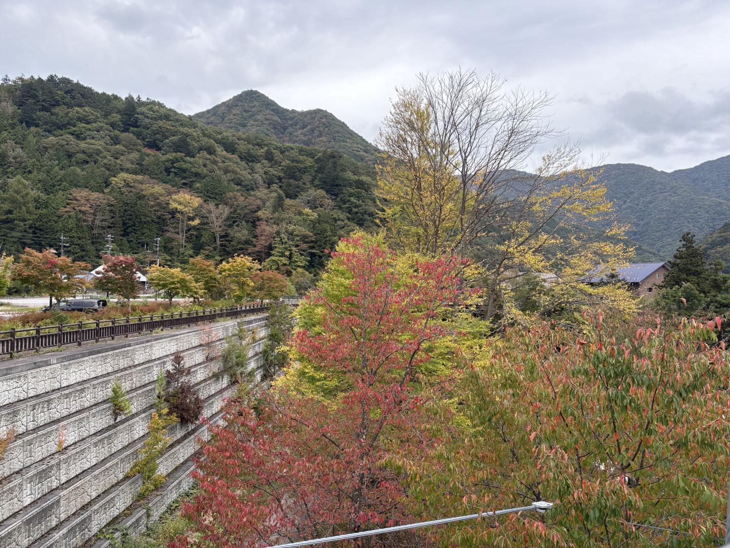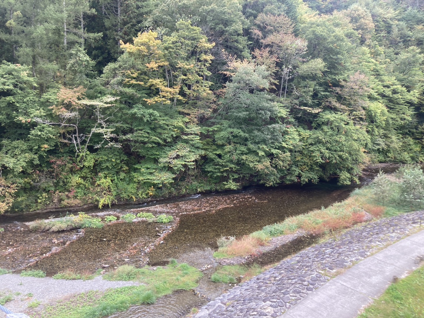 結論から言うと、時間調節のためにと思って立ち寄った「水の郷」ですが、とても良かったです。まず、駐車場で車を降りた場所から見える景色が、とても素晴らしかったです。紅葉した木々もちらほら見えて、そばを流れる川も絵になっていました。