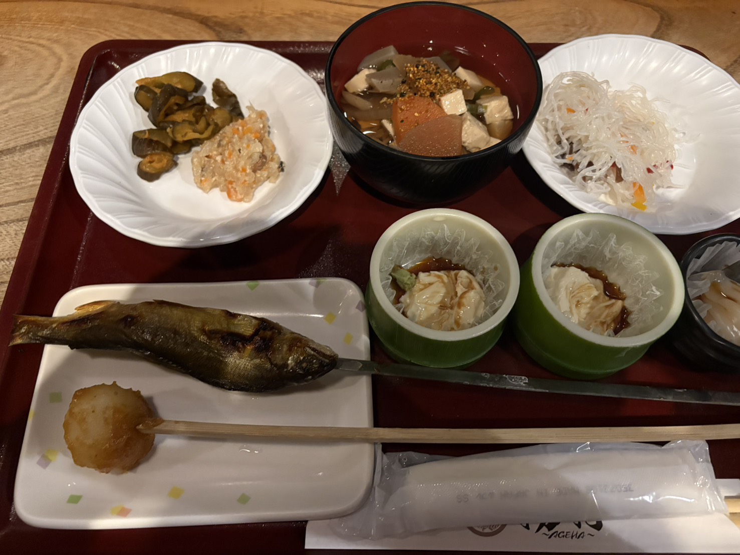しかし、もっぱら意識は、美味しい食事の方に向けられていました。今回も、焼き魚(アユの串焼き)と、ゆばは外せませんでした。どれもこれも美味しくて、普段なら十分な量を食べましたが、お代わりをしてしまいました。