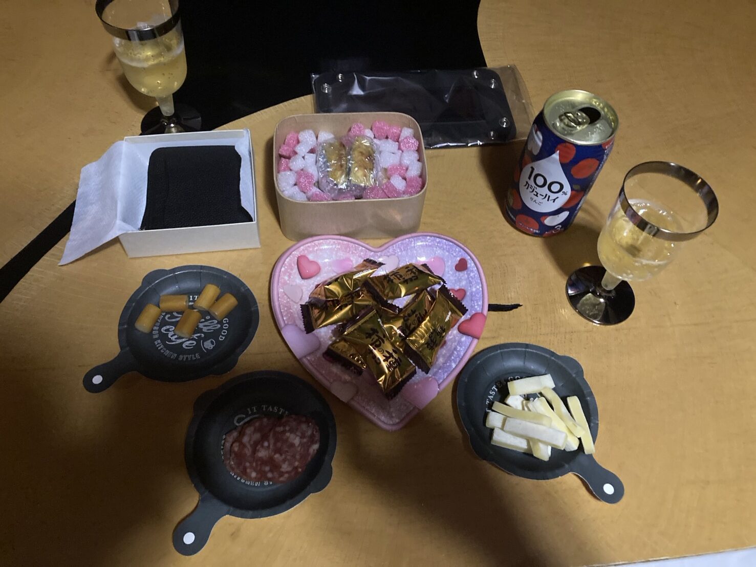 明日は、私の64歳の誕生日です。彼女の提案で、年越しの誕生パーティーを開いてくれました。紙ではありましたが、おしゃれなお皿をパーティー風に並べて、お酒のためのグラスも用意してくれました。自分は、本当に幸せだと感じました。