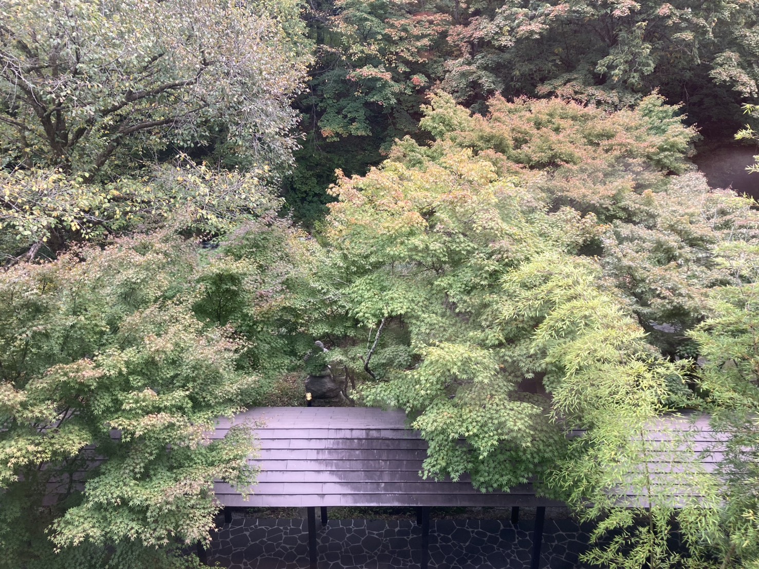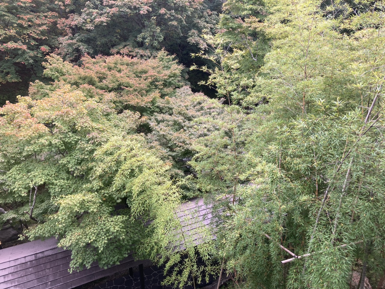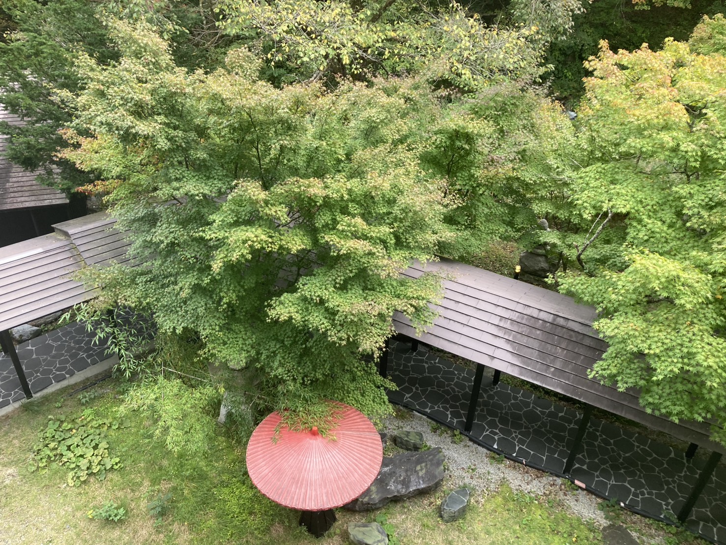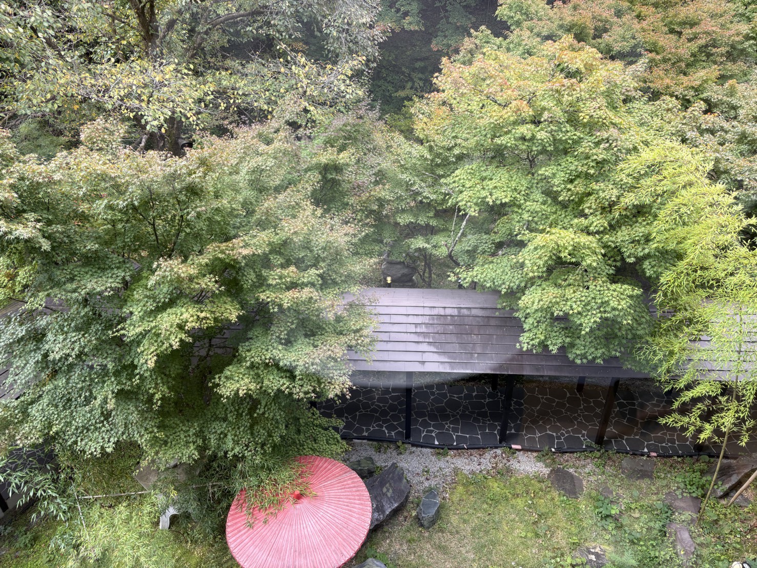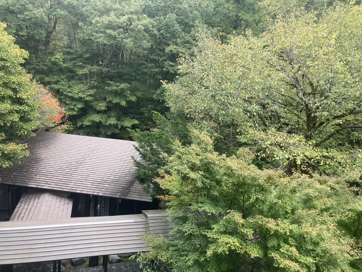 受付の玄関から、大きなエントランスを経て、自分たちの部屋に向かいました。実は、この宿は、入り口が宿の3階に通じており、私たちの部屋は3階だったので、上下の移動なく部屋に入ることができました。しかし、部屋からの眺めは3階からなので、宿の庭全体と、近くを流れる川などが一望できました。